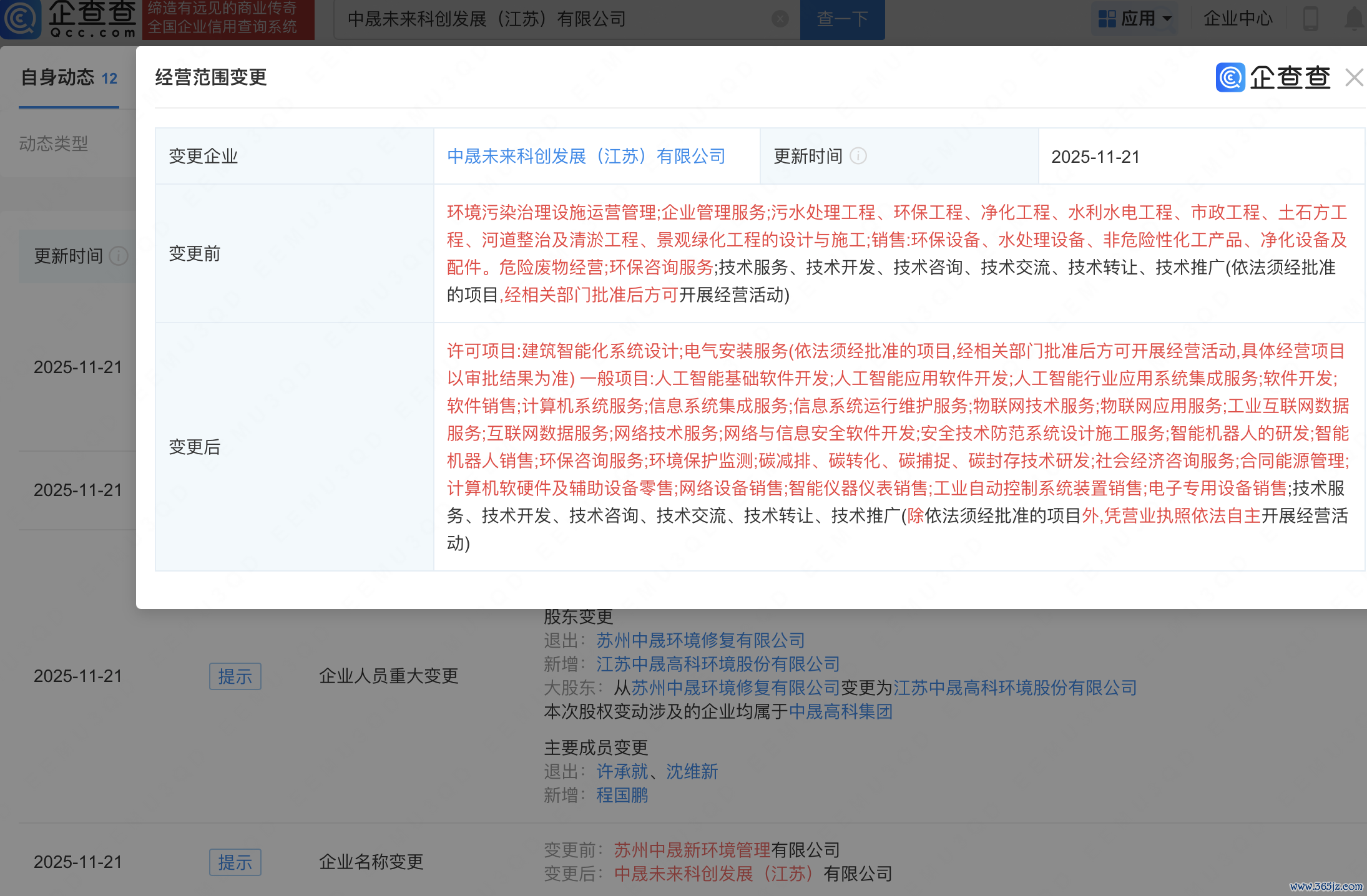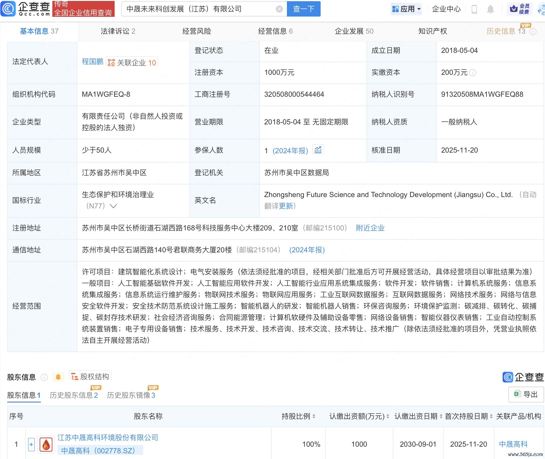 近日配股宝,原苏州中晟新环境管理有限公司发生工商变更,企业名称变更为中晟未来科创发展(江苏)有限公司,苏州中晟环境修复有限公司退出股东行列,新增中晟高科(002778)为全资股东。同时,公司经营范围变更为人工智能应用软件开发、人工智能行业应用系统集成服务、物联网技术服务、智能机器人的研发、智能机器人销售等。企查查信息显示,该公司成立于2018年,法定代表人为程国鹏。