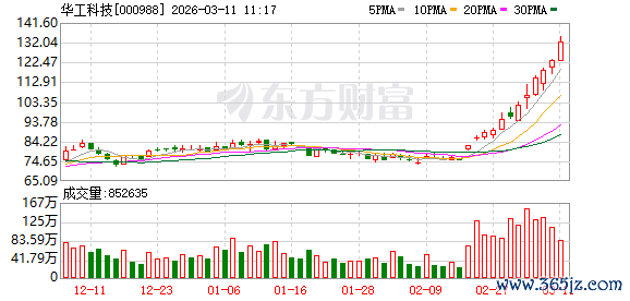 数据宝统计,截至10:49,华工科技成交额101.05亿元,超100亿元。最新股价上涨8.46%,换手率7.82%。上一交易日该股全天成交额为136.37亿元。